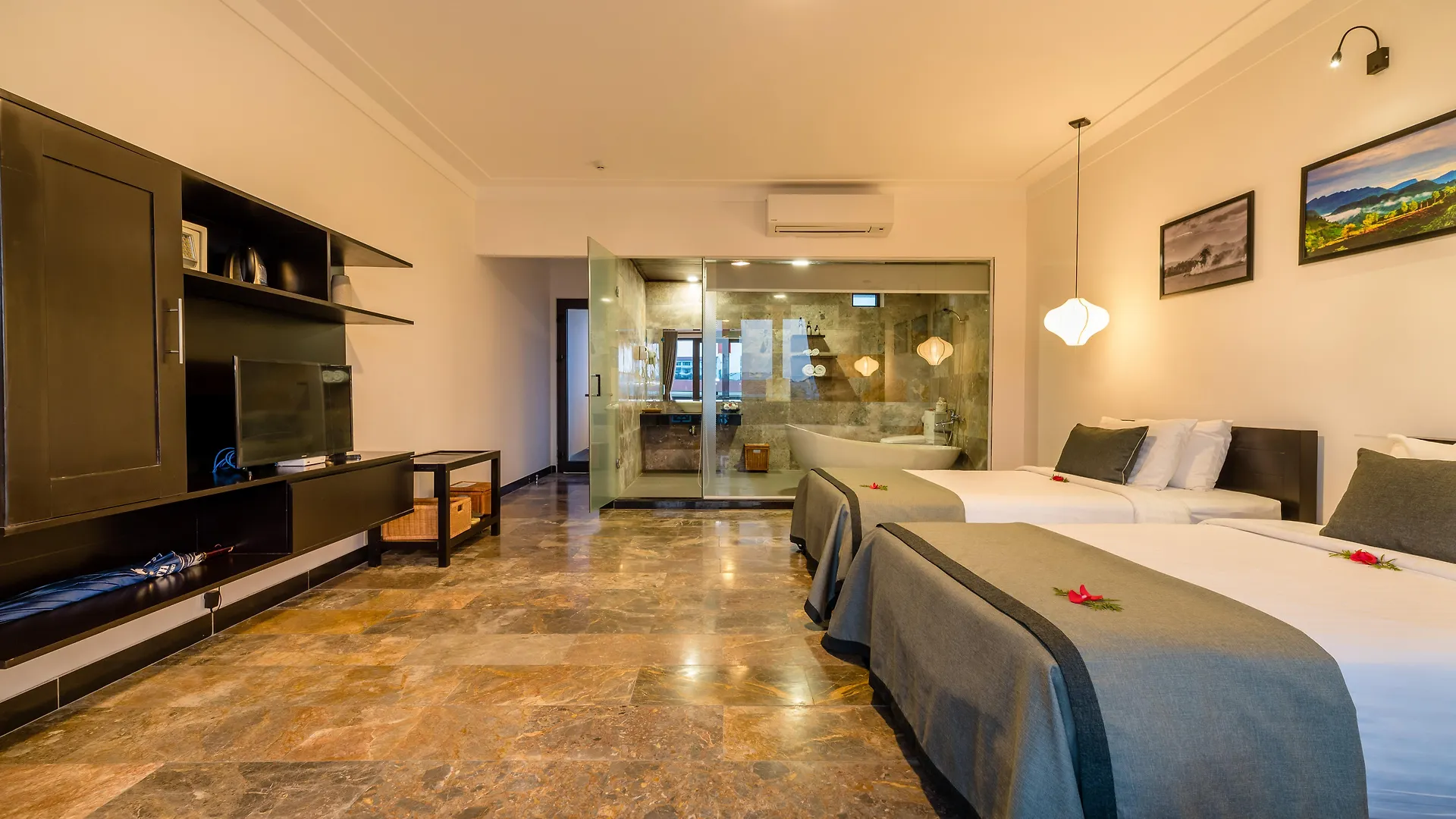 Overnatningsstedet byder på 78 gæsteværelser, som er indrettet med en balkon, et mini køleskabsbar og en personlig værdiboks for et behageligt ophold i Hoi An. Visse enheder har udsigt over floden. Gæsterne kan gøre brug af en brusekabine og separat toilet i hvert badeværelse.
